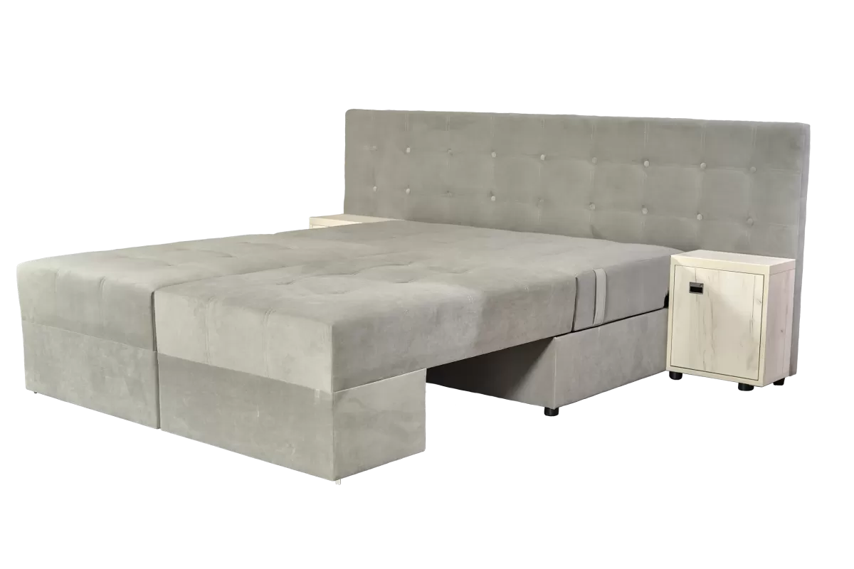 Se transformă rapid într-un pat confortabil cu suprafață de dormit 141x190 cm. Sistemul de extensie glisant cu ladă integrată oferă spațiu suplimentar pentru depozitare, fiind ideal pentru apartamente sau camere de oaspeți.