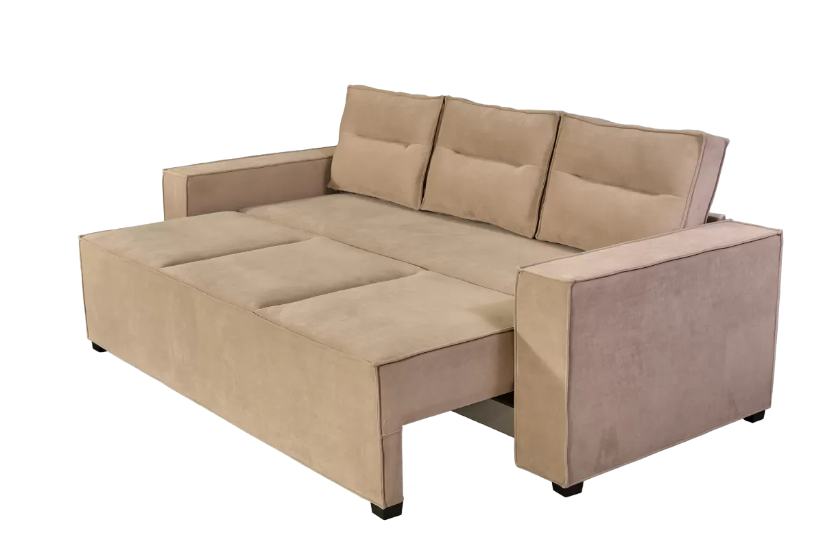 Se transformă rapid într-un pat generos datorită sistemului practic de extensie tip sertar cu rabatare.