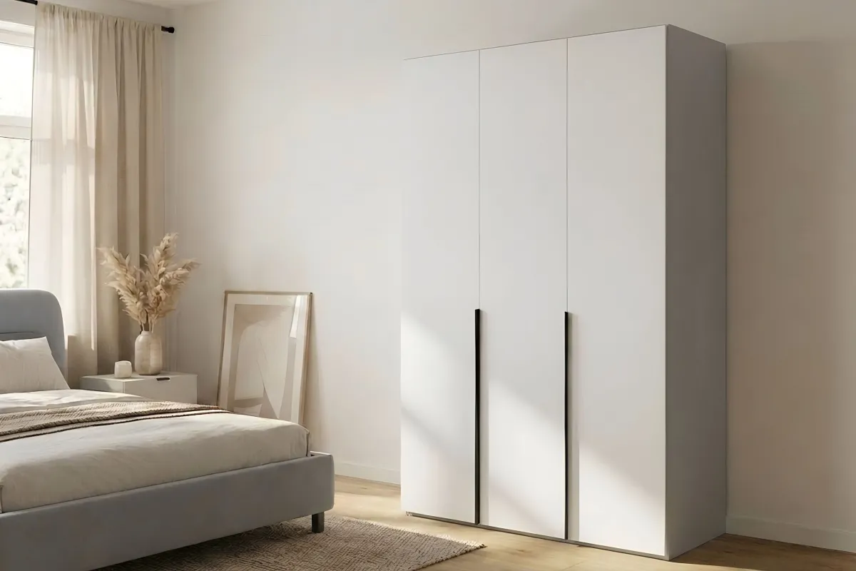 Трехдверный шкаф HARDY 1350 воплощает современный минимализм благодаря безупречной белой матовой отделке и четким геометрическим линиям. Дизайн с лаконичными акцентными ручками и продуманное внутреннее пространство делают эту модель идеальным выбором для создания светлого, просторного и функционального интерьера.