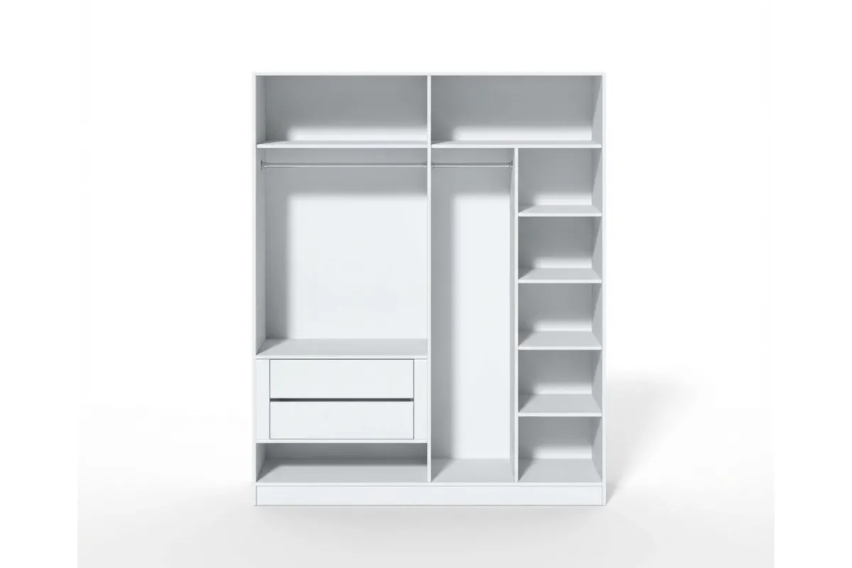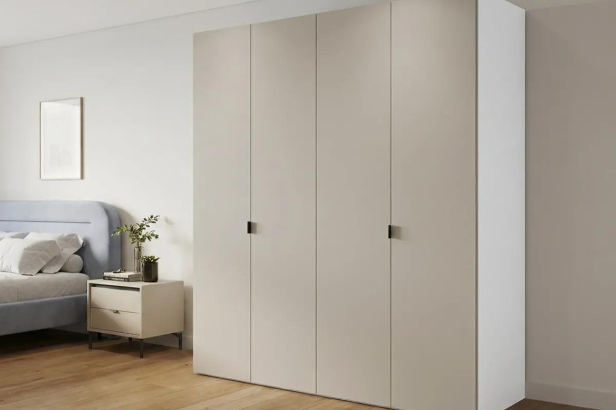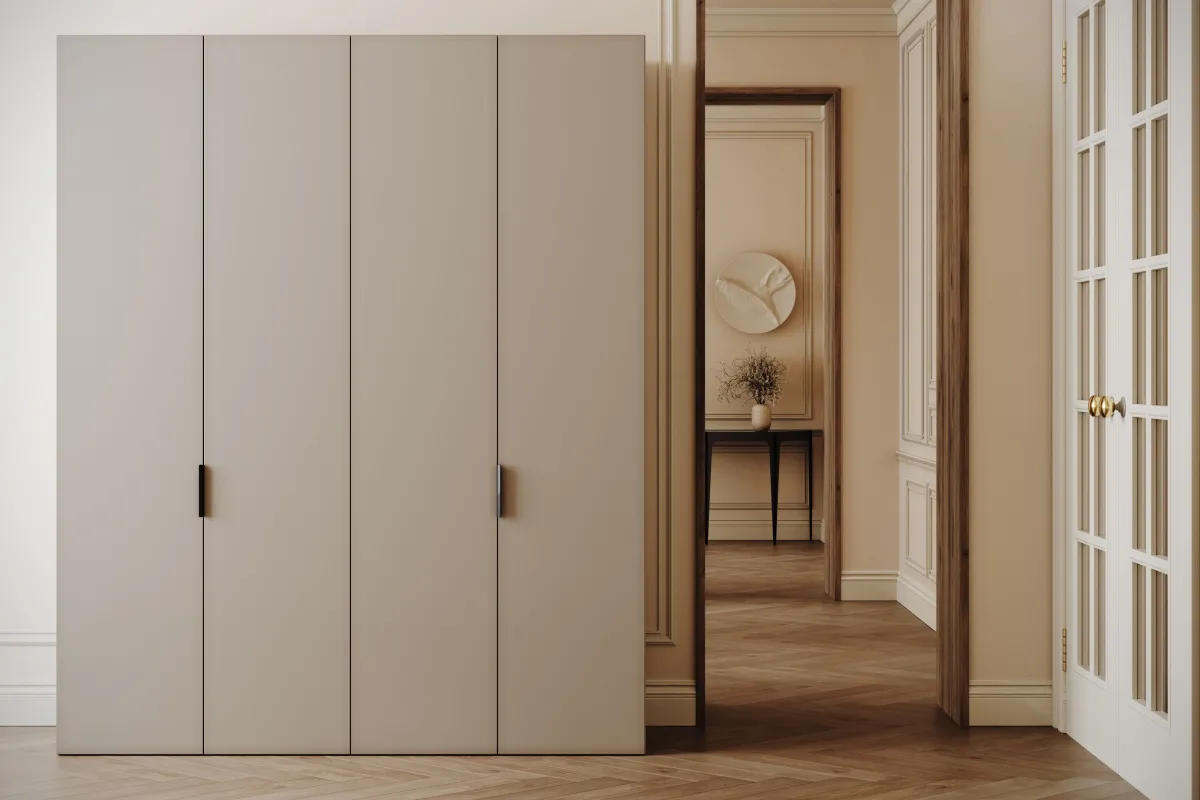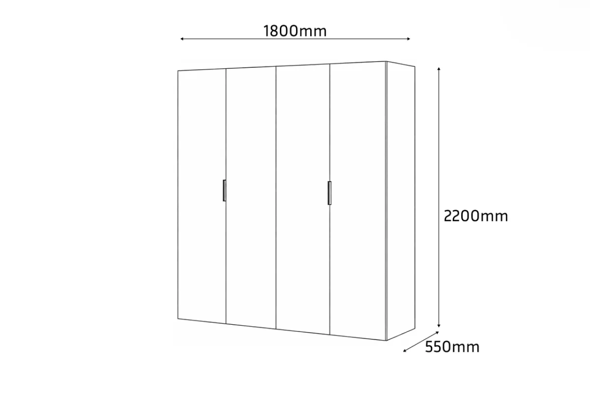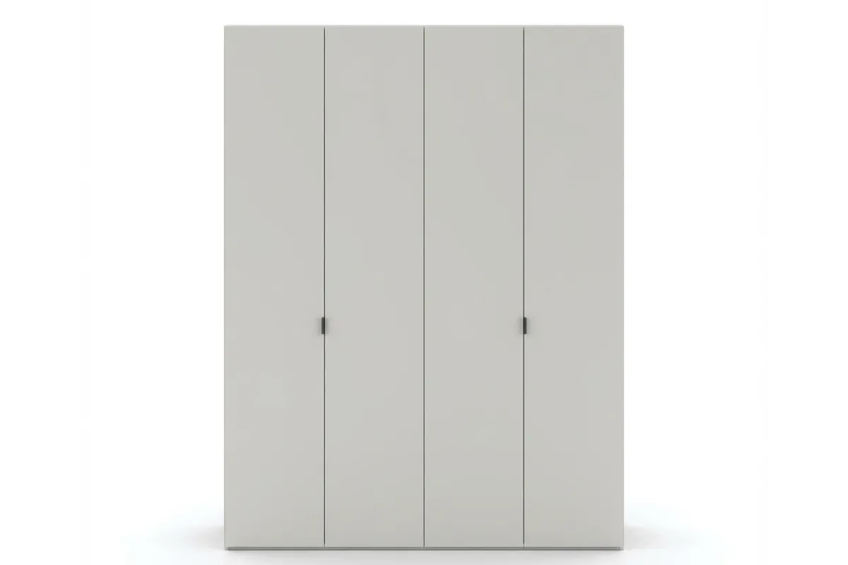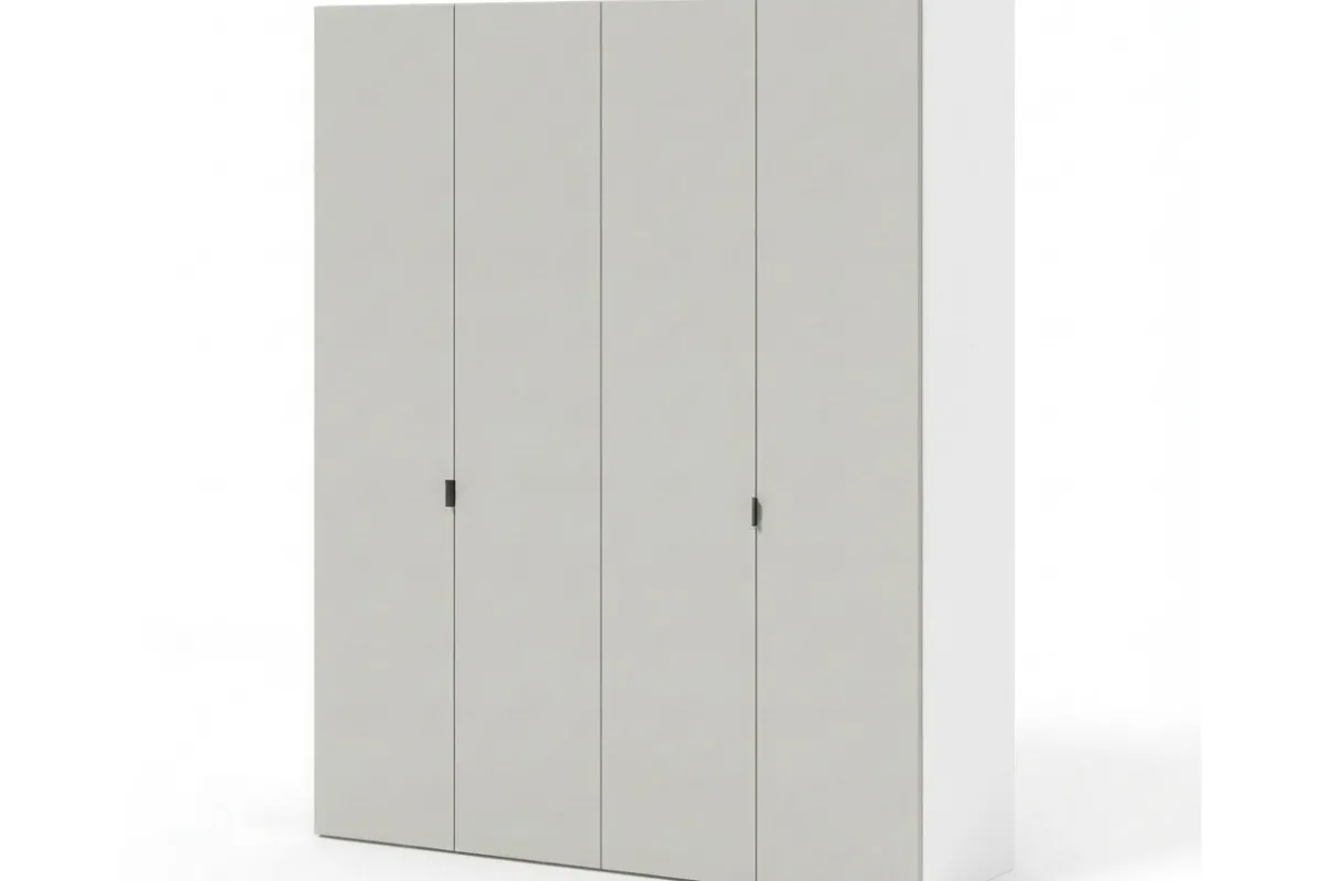 Четырехдверный шкаф HARDY 1800 — это внушительный элемент мебели, идеально сочетающий расширенную функциональность с современной эстетикой светло-серой матовой отделки. Вместительное внутреннее пространство и выразительные вертикальные ручки придают модели особый стиль, делая её идеальным решением для полной организации гардероба в просторной спальне.