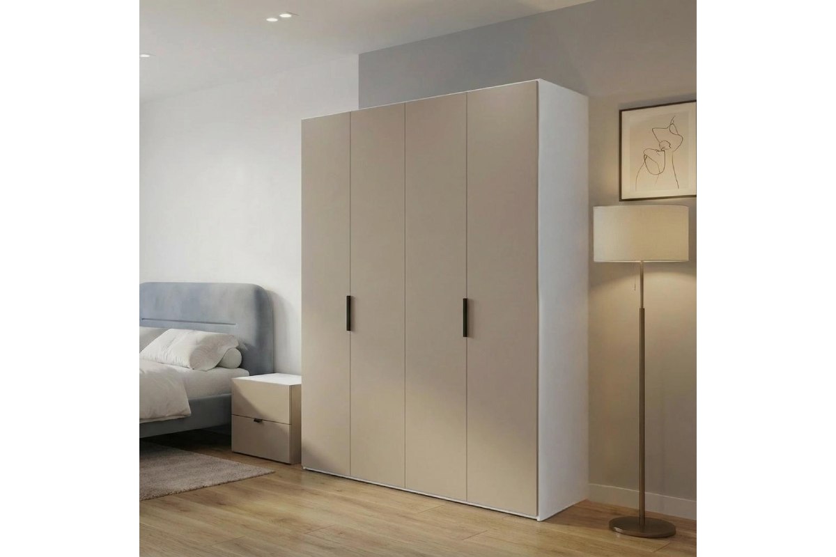 Шкаф HARDY 1800, 4 Двери, Корпус Белый / Фасад Глиняный Серый