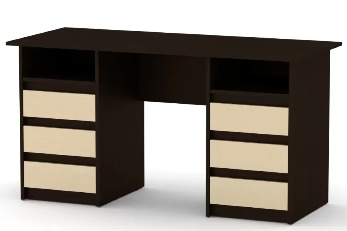 Masa de scris "Декан-3" (1400) este soluția premium pentru cei care au nevoie de o suprafață de lucru extinsă și de un sistem de stocare masiv. Cu o lățime impunătoare de 140 cm, acest birou este ideal pentru profesioniști, studenți sau pentru configurarea unui spațiu de lucru partajat, oferind un echilibru perfect între stilul clasic și funcționalitatea modernă.