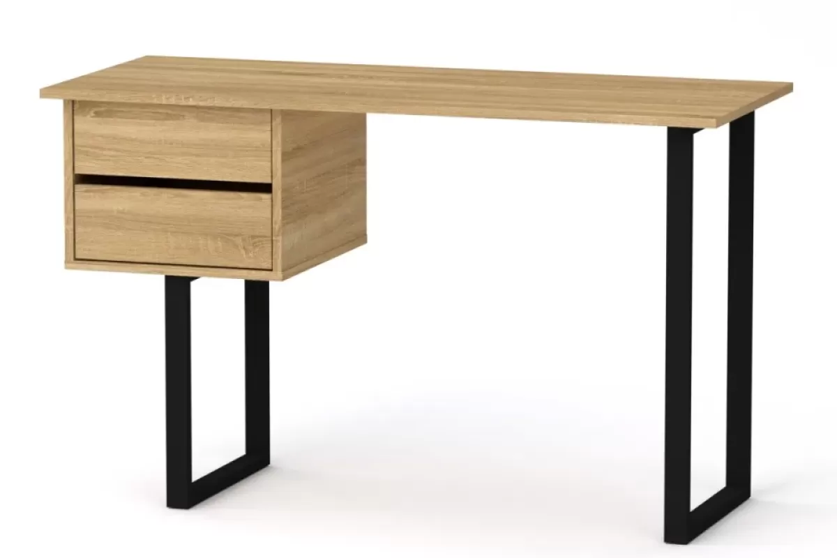 Masa de scris „Loft-3” este combinația ideală între stilul industrial și practicitate. Modelul este dotat cu un blat masiv de 1200 mm, un dulap suspendat cu două sertare și suporturi metalice stabile cu contur închis. Designul minimalist în nuanțe închise (wenge) subliniază caracterul modern al interiorului, oferind un spațiu de lucru confortabil atât pentru birou, cât și pentru acasă.