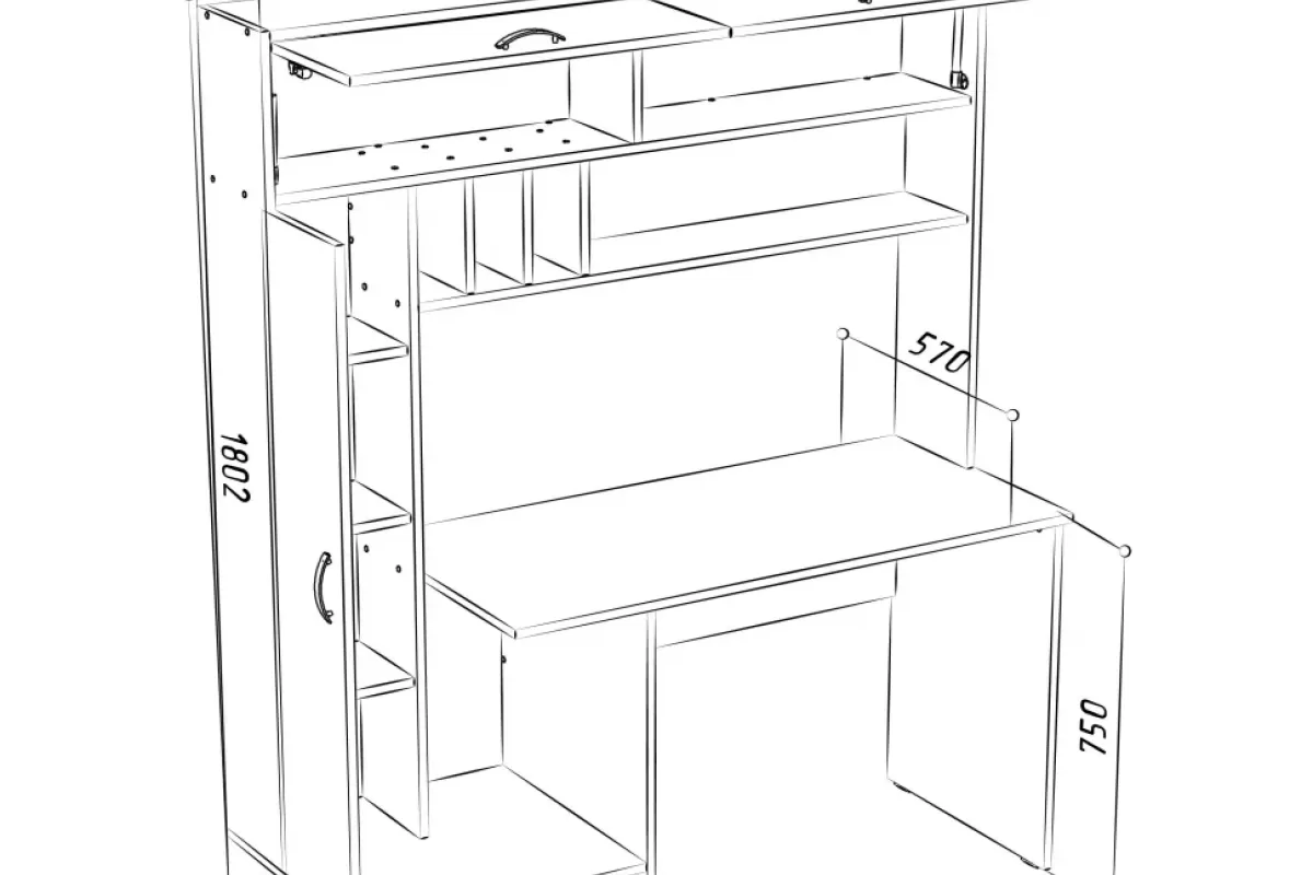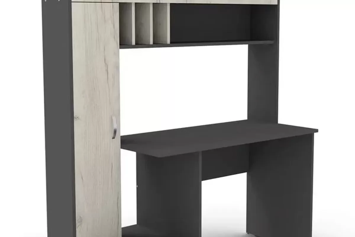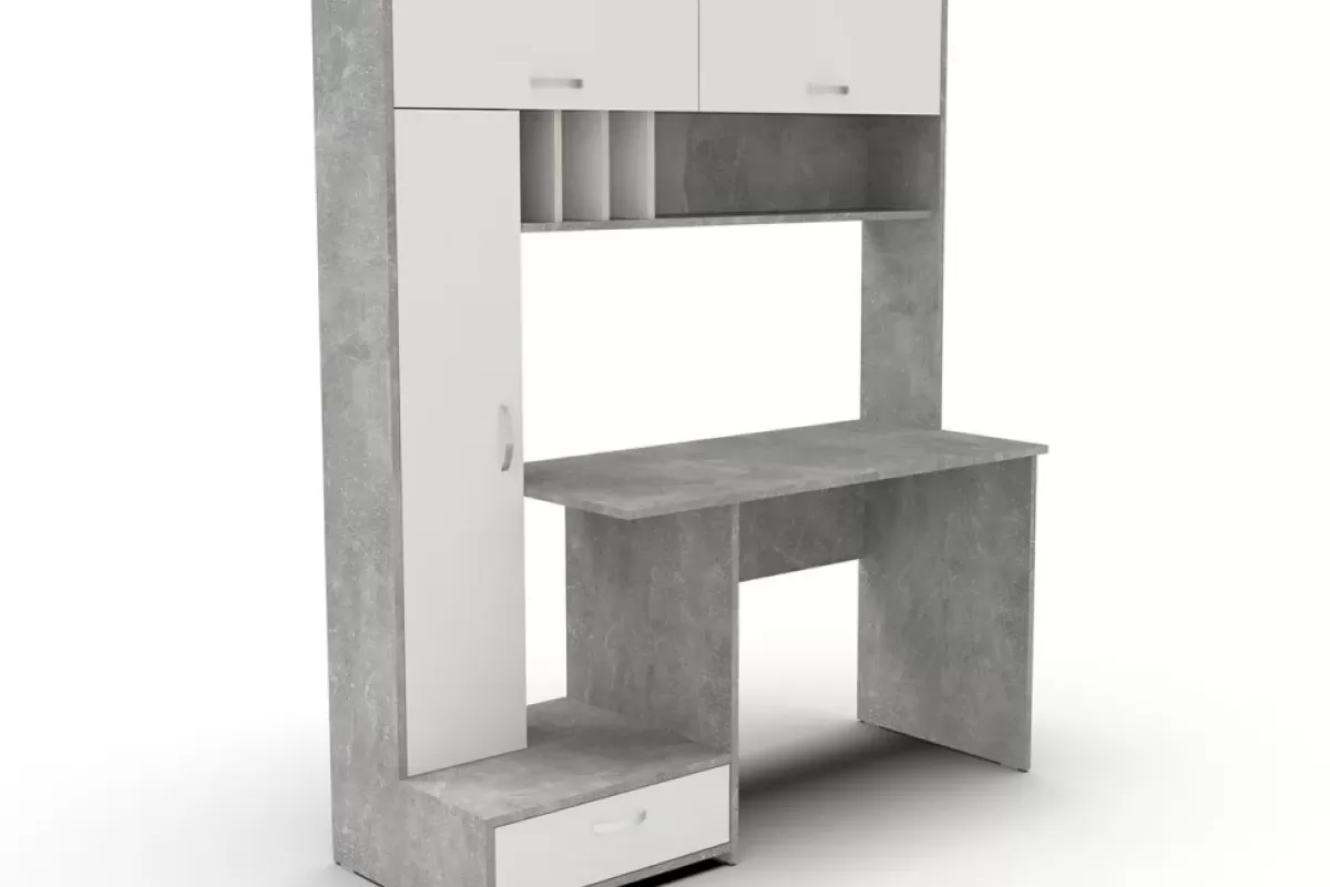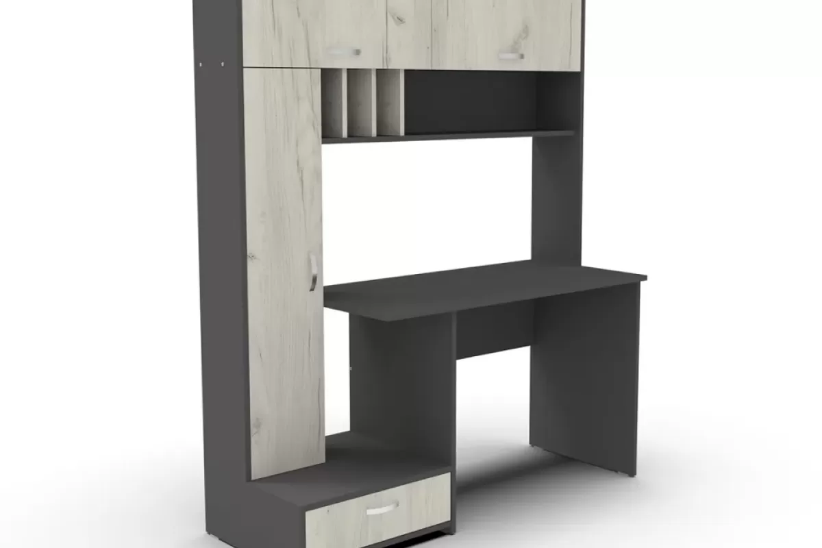 Masa de scris ML-1 stânga este soluția ideală pentru un spațiu de lucru modern și organizat. Designul său inteligent include o structură de tip ansamblu, cu un dulap înalt pe partea stângă, multiple compartimente deschise și sertare pentru depozitare eficientă. Realizată din PAL melaminat de înaltă calitate, aceasta combină estetica contemporană (nuanțe precum Antracit/Kraft alb sau Atelier/Alb) cu funcționalitatea necesară unui elev sau profesionist. Dimensiunile generoase de aproximativ 1500 x 570 x 1800 mm oferă o suprafață de lucru confortabilă și numeroase zone pentru cărți și accesorii.