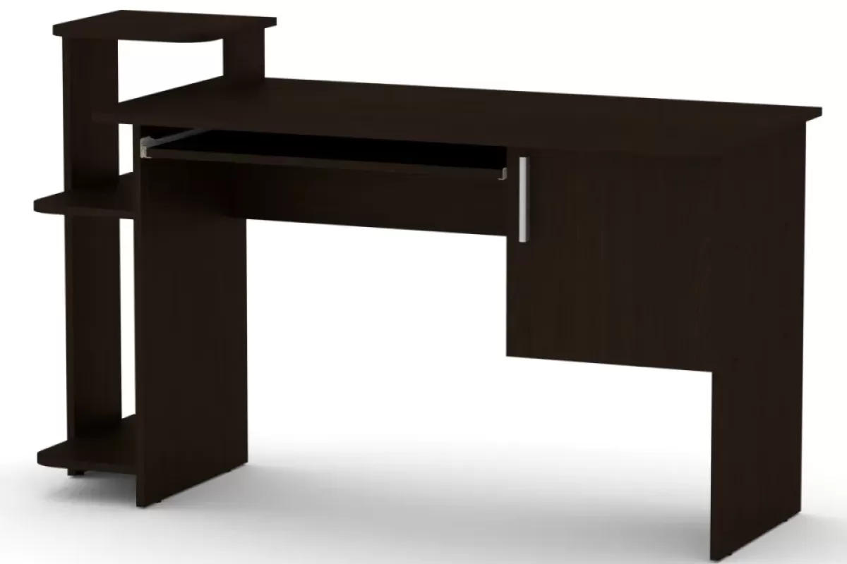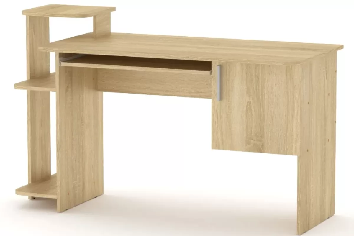 Masa de calculator SKM-3 este un model clasic pentru organizarea eficientă a spațiului de lucru. Masa este dotată cu o poliță culisantă pentru tastatură, un dulap închis cu ușă și un raft lateral deschis cu trei niveluri. Construcția simplă și fiabilă din PAL melaminat o face o alegere universală atât pentru biroul de acasă, cât și pentru camera elevului.