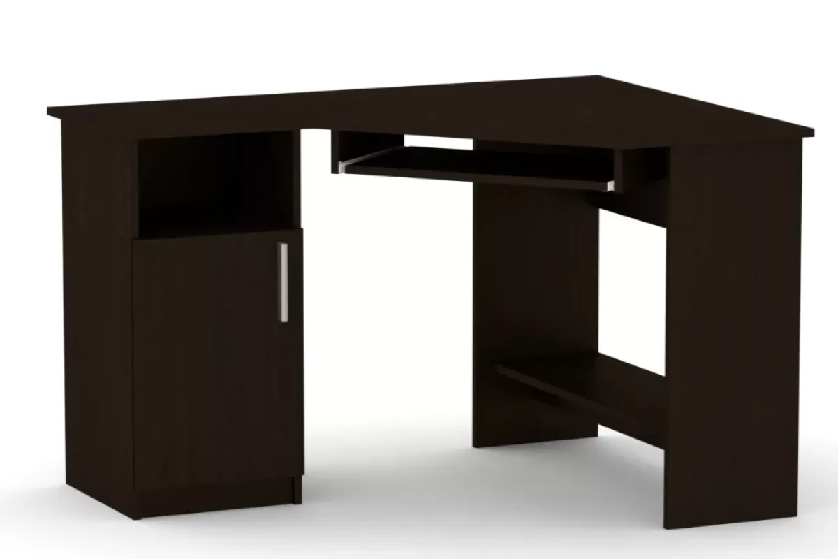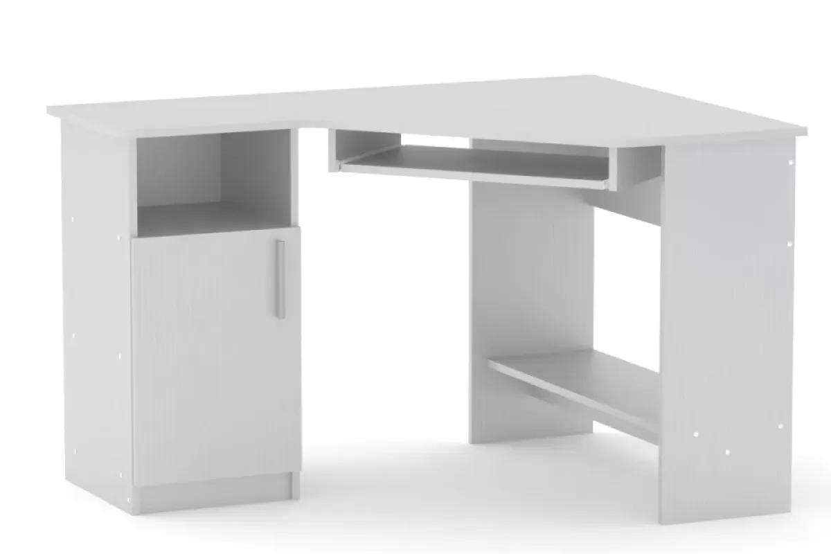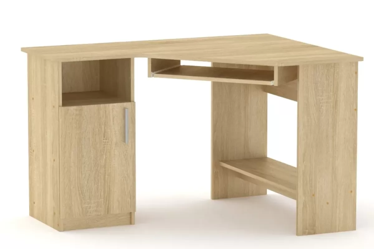 Masa de calculator de colț СУ-14 este soluția ideală pentru a transforma orice colț al camerei într-un spațiu de lucru ergonomic și bine organizat. Designul său inteligent include o tumba laterală versatilă cu rafturi și o ușă batantă, oferind spațiu generos pentru depozitarea documentelor și a rechizitelor. Blatul spațios este completat de o poliță culisantă pentru tastatură și un raft inferior practic, asigurând confortul necesar pentru studiu sau proiecte de birou.