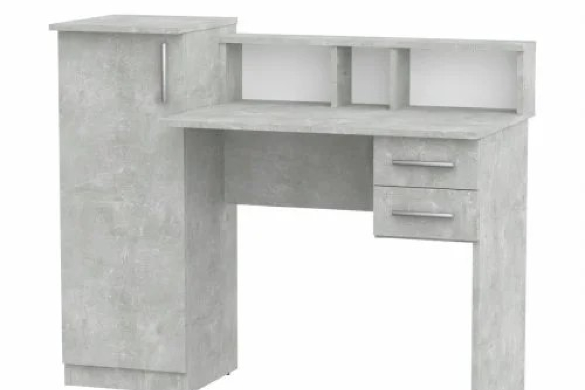 Masa „СК Пи-Пи-1” (1175) este un birou practic și spațios, realizat din PAL cu finisaj beton gri, ideal pentru birouri sau spații de studiu. Dispune de un dulap vertical generos pe partea stângă, două sertare și un raft deschis cu compartimente pentru organizarea eficientă a documentelor și accesoriilor. Designul modern și funcțional oferă un spațiu generos pentru activități de lucru sau studiu, fiind o soluție excelentă pentru organizarea eficientă a spațiului.