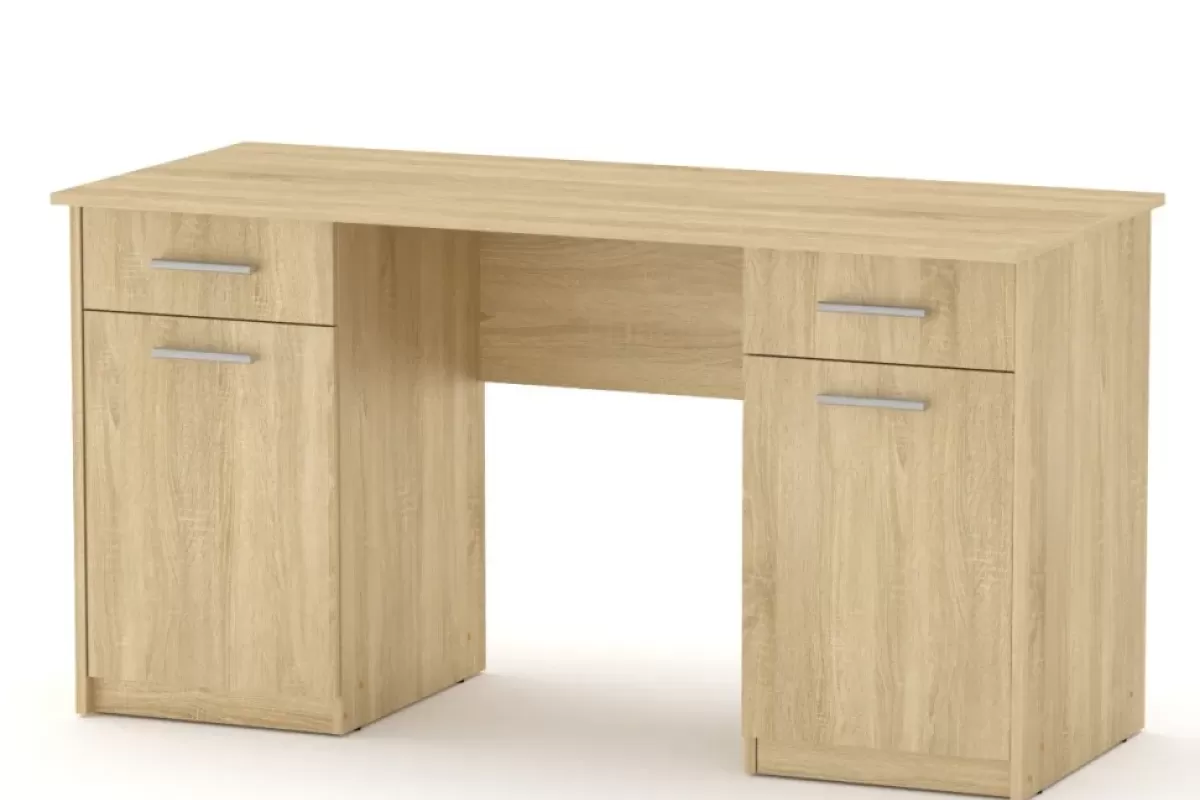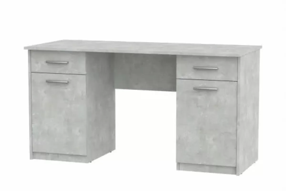 Biroul de scris „Учитель-2” (1400) este un mobilier practic și spațios, ideal pentru birouri sau camere de studiu. Realizat din PAL cu finisaj beton gri, biroul oferă un design modern și robust, cu două corpuri laterale ce includ sertare și dulapuri pentru depozitare eficientă. Suprafețele mari permit desfășurarea confortabilă a activităților de lucru sau studiu. Este o soluție excelentă pentru organizarea spațiului și păstrarea ordinii.