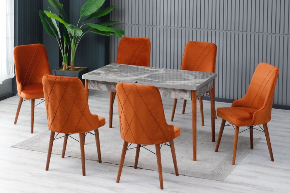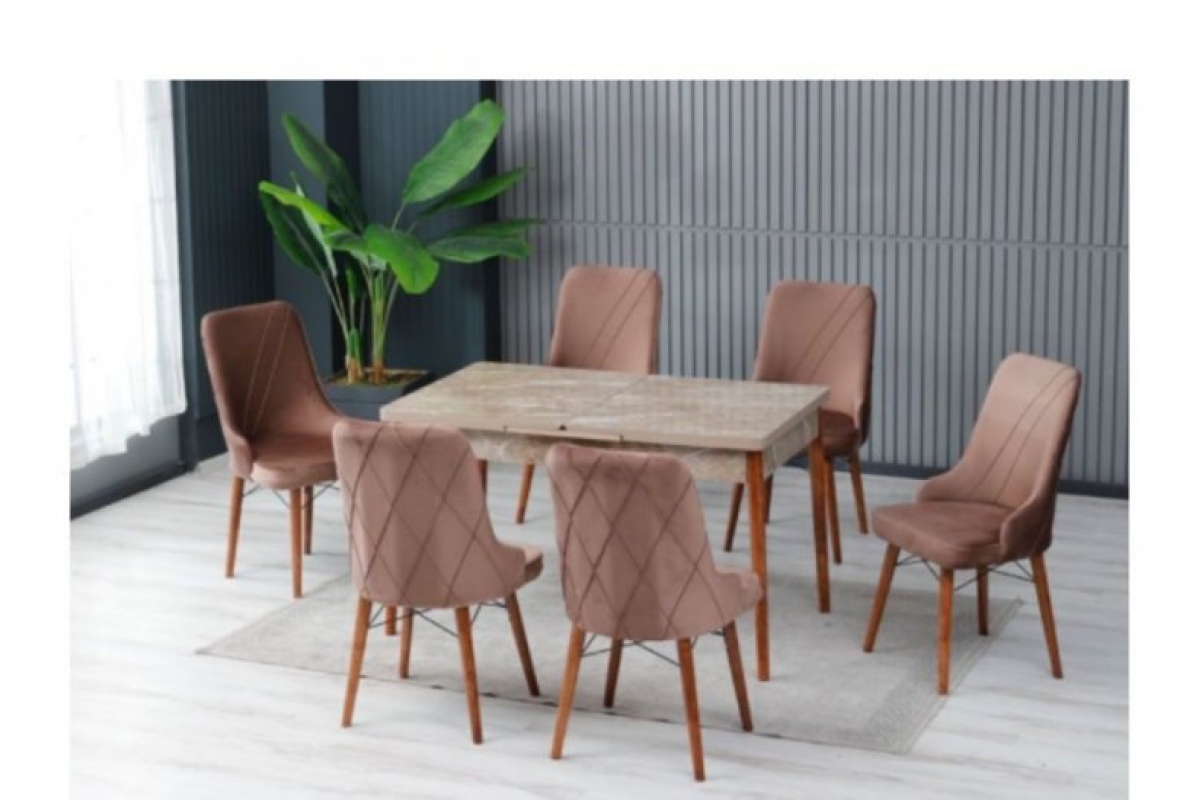 Set Dining SAHRA – Masă Extensibilă și 6 Scaune Tapițate